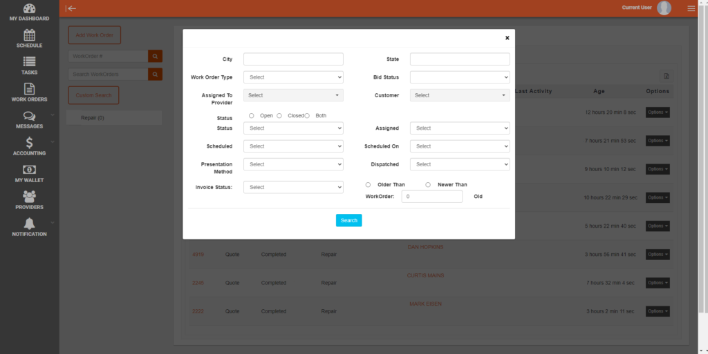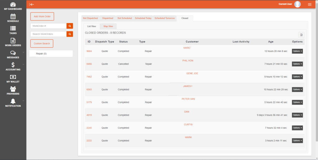 Create as many saved views as you like using various information about your work orders. Saved views allow you to quickly visualize subsets of your work orders based on selected information like status, scheduled date, age, assignment, and many other available parameters.