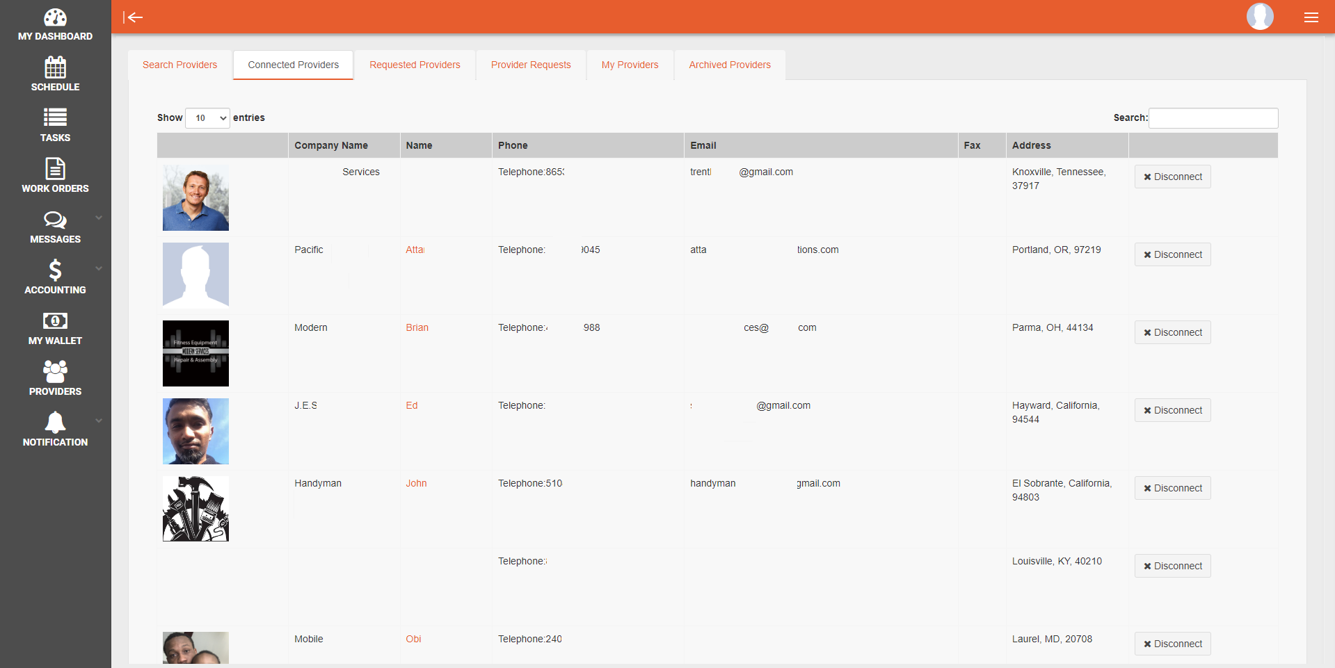 Manage your network of service providers. Add new providers, manage requests from providers that want to service your products, remove unwanted providers and maintain the network you want.